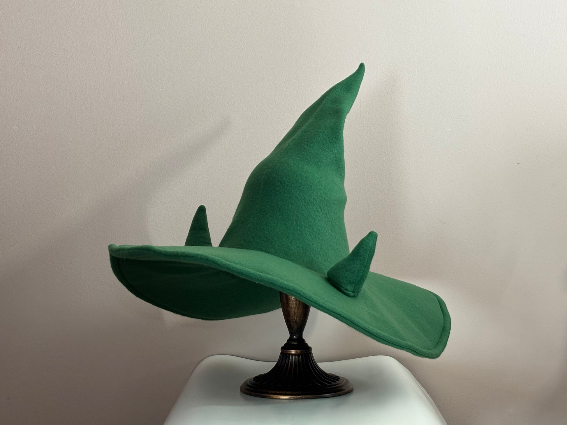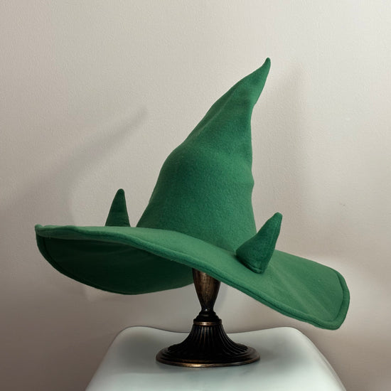 Custom Witch/Wizard Hat with small Horns| 18” Wide Brim Fleece hat | Made to Order